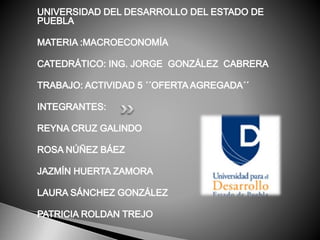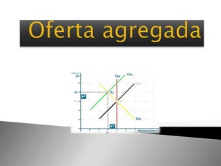 La oferta agregada es la cantidad total de bienes y servicios que las empresas planean producir y vender en la economía nacional durante un período, y depende de factores como la tecnología y los precios existentes. Existe una dicotomía entre la oferta agregada clásica, que es vertical a largo plazo e independiente de los precios, y la oferta agregada keynesiana, que tiene una pendiente positiva a corto plazo debido a los rendimientos decrecientes. La curva de oferta agregada describe la relación entre el nivel de precios