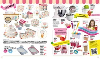 Este documento presenta una variedad de productos para el hogar, la cocina y el entretenimiento. Incluye electrodomésticos como batidoras, cafeteras y tostadoras, así como utensilios de cocina como moldes para helados y cocteleras. También ofrece accesorios para preparar y servir comidas y bebidas, como vajillas, copas y bandejas. El documento proporciona detalles sobre las características y precios de cada artículo.