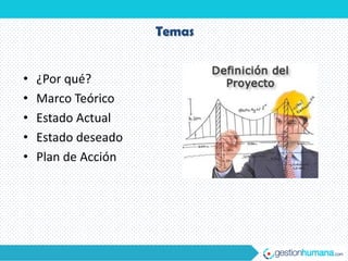 El documento describe los planes para crear una oficina de proyectos. Explica que la oficina actuará como unidad de soporte para todas las áreas de la organización, administrando proyectos dentro del plazo, costo y calidad requeridos a través de métodos establecidos. También presenta un plan de acción que incluye definir la misión, metodología, estado actual y deseado, y estructura de la oficina de proyectos.