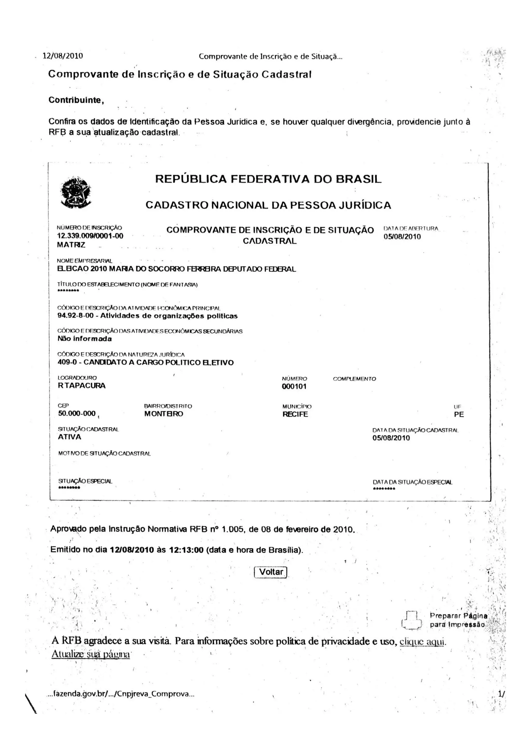 Pedido de Eduardo da Fonte para presidente Dilma Rousseff