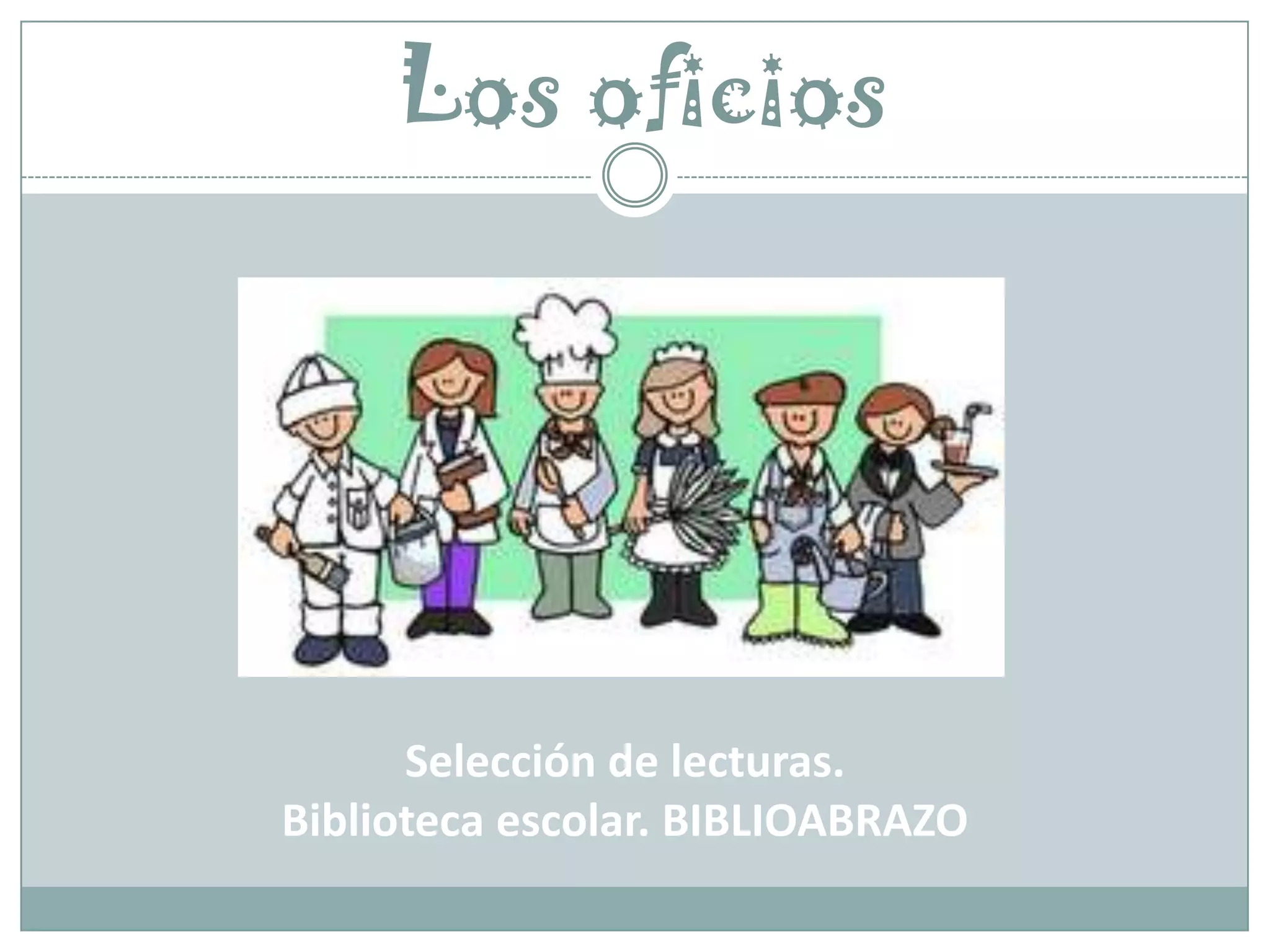 Este documento presenta una lista de libros de varios géneros relacionados con diferentes oficios e incluye títulos sobre bomberos, médicos, maestros, astronautas, marineros y agricultores. La lista incluye diccionarios, libros de ficción, poesía y libros pop-up sobre una variedad de profesiones para niños.