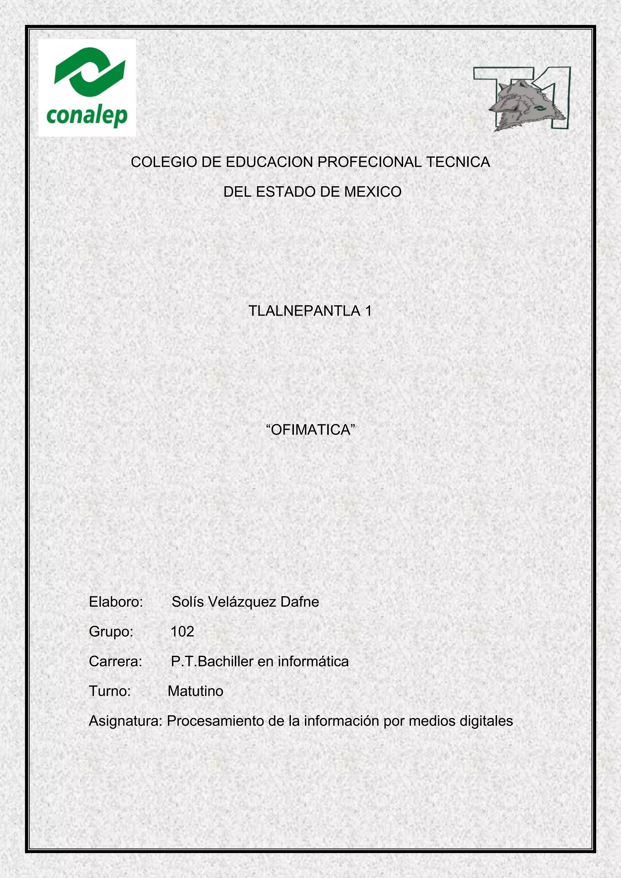El documento habla sobre la ofimática. Define la ofimática como el conjunto de técnicas, aplicaciones y herramientas informáticas que se utilizan para optimizar, automatizar y mejorar las tareas y procedimientos de una oficina. Explica que las herramientas ofimáticas permiten crear, manipular, transmitir y almacenar la información necesaria en una oficina y que cualquier actividad manual de una oficina puede ser automatizada con estas herramientas. Además, señala que la ofimática comenzó a desarrollarse en la