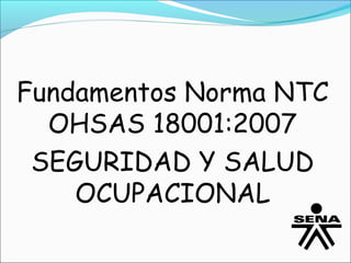 El documento proporciona información sobre los objetivos y requisitos de un sistema de gestión en seguridad y salud ocupacional de acuerdo con la norma OHSAS 18001. Explica los beneficios de implementar dicho sistema, así como conceptos clave como peligros, riesgos, planes de emergencia, brigadas de emergencia y simulacros. Finalmente, detalla algunos de los roles de entidades como el Ministerio de Salud y el Comité Paritario de Salud Ocupacional en materia de seguridad y salud laboral.