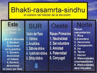 1. El documento presenta una introducción al Bhakti-rasamrita-sindhu, un texto clásico sobre la devoción a Krishna, cubriendo temas como las formas de Krishna, características, etiqueta vaisnava, adoración de deidades y festivales.