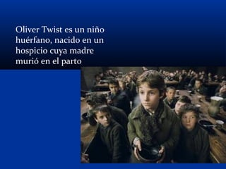 Oliver Twist es un niño huérfano que crece en un hospicio y luego trabaja en una funeraria, antes de unirse a una banda de ladrones en Londres. Un anciano que Oliver intenta robar en realidad lo rescata de la banda. Más tarde, Oliver resulta herido durante un robo y es cuidado por la dueña de la casa durante tres meses. Finalmente, se revela que Oliver tiene un hermano y hereda la fortuna de su pariente Fagín, mientras que el Sr. Blownlow vuelve a adoptar a Oliver.