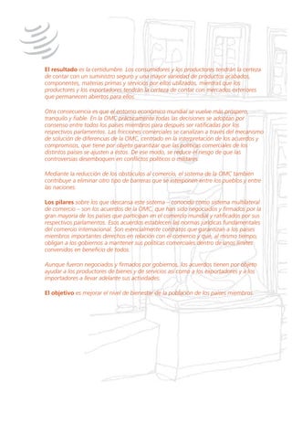 La Organización Mundial del Comercio (OMC) es la única organización internacional que regula las normas del comercio global entre países. Su función principal es garantizar que el comercio fluya de manera libre, predecible y sin obstáculos. La OMC se encarga de administrar acuerdos comerciales, servir como foro para negociaciones, resolver disputas comerciales y examinar políticas nacionales.