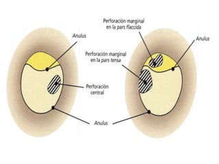 La otitis media crónica se clasifica en supurada con perforación central o marginal, y no supurada secretora. Factores causales incluyen infecciones recurrentes, disfunción de la trompa de Eustaquio, y obstrucción persistente en la aereación del oído medio. En la fisiopatología, el proceso inflamatorio crónico es causado por lisozimas y bacterias en la secreción, lo que puede dañar el nervio auditivo.
