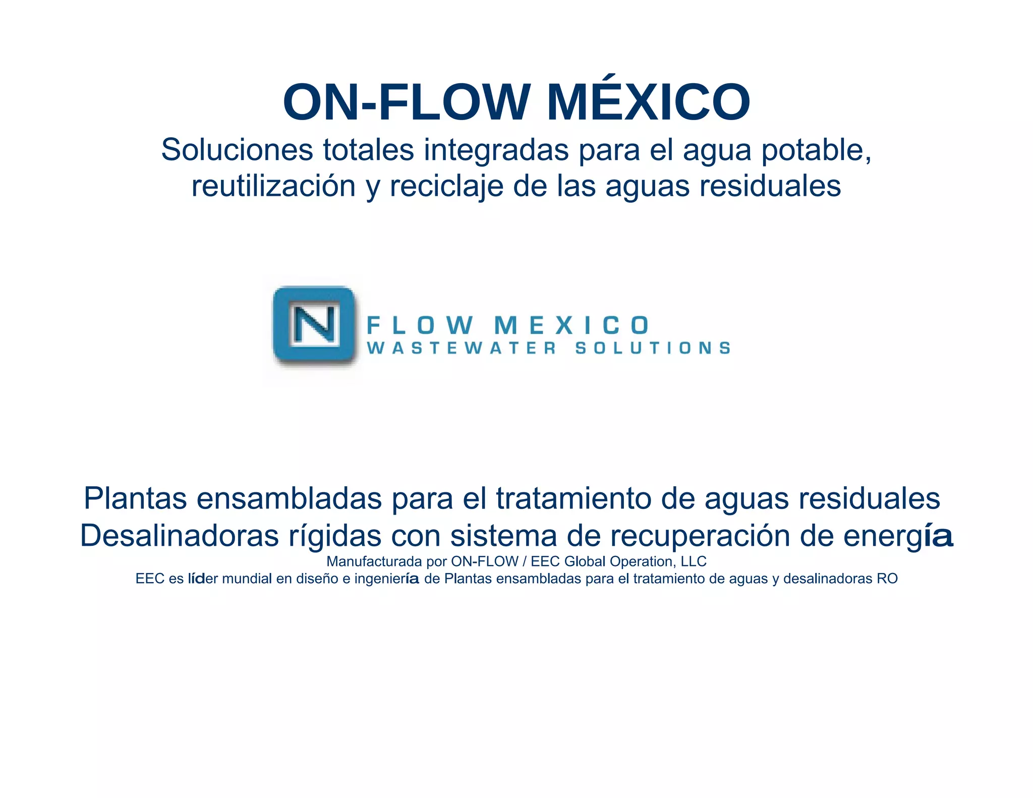 On-Flow México ofrece soluciones integrales para el tratamiento de aguas residuales y desalinización en plantas ensambladas dentro de contenedores. Estas plantas son compactas, fáciles de instalar y requieren poco mantenimiento, operando de forma automatizada y amigable con el medio ambiente. Su tecnología permite una rápida puesta en marcha y se adapta a diversas capacidades y necesidades de efluentes.