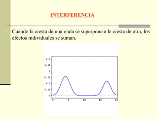 El documento explica el fenómeno de las ondas estacionarias que se producen cuando una onda se refleja en un extremo fijo de una cuerda. Cuando la onda incidente y la reflejada interfieren de manera constructiva, se forman los antinodos donde la amplitud es máxima, y cuando interfieren de manera destructiva, se forman los nodos donde la amplitud es mínima. La longitud de onda depende de la frecuencia y la posición de los antinodos y nodos sigue una relación periódica con la longitud de la cuer