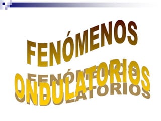 1) Los fenómenos ondulatorios se producen en todas las ramas de la física y se originan cuando una perturbación se propaga a través de un medio, transmitiendo energía pero sin transportar materia. 2) Las ondas electromagnéticas emitidas por una antena de radio son recibidas por un aparato de radio y convertidas en ondas sonoras. 3) Los fenómenos ondulatorios son una parte importante del mundo que nos rodea, a través de las cuales recibimos sonidos, luz e información.