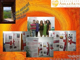 El documento describe las Jornadas Puertas Abiertas en el Centro Insular de Entidades de Voluntariado en Tenerife del 17 al 22 de noviembre de 2008. Durante este evento, voluntarias de una asociación participaron en talleres de abrazoterapia con estudiantes de dos institutos y un centro de acogida el 21 de noviembre. El 22 de noviembre compartieron otro taller de abrazoterapia con un grupo de invitados.