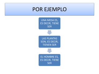 El documento trata sobre la ontología. Explica que la ontología es el estudio de la existencia de las cosas y cómo los filósofos griegos, medievales, modernos y contemporáneos han respondido a las preguntas sobre qué es y quién es el ser. También describe el desarrollo del pensamiento ontológico desde los primeros filósofos griegos como Parménides hasta Aristóteles.