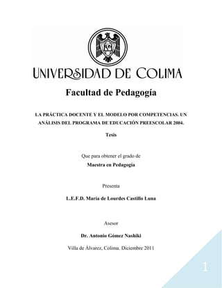 Este capítulo describe brevemente la historia de la educación preescolar en México, desde sus inicios a principios del siglo XX con las escuelas de párvulos hasta la actualidad. Se menciona que ha habido cuatro programas de educación preescolar anteriores y se resalta la transformación del papel del maestro de transmisor de conocimientos a guía del desarrollo infantil. También se analiza la última reforma de educación preescolar de 2008 y las deficiencias en infraestructura y personal docente. Finalmente, se describe