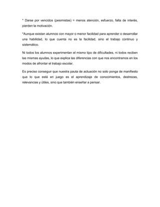 Los estudiantes pierden motivación e interés en el trabajo escolar si no saben cómo aprender o si no entienden el material. Algunos estudiantes buscan ayuda cuando tienen dificultades, lo que les permite seguir esforzándose, mientras que otros se sienten incompetentes y dejan de intentarlo. Es importante enseñar estrategias de aprendizaje a los estudiantes y mostrarles que el proceso de aprendizaje es más importante que los resultados a corto plazo.