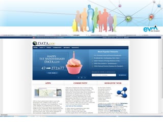 Este documento discute el concepto de gobierno abierto y datos abiertos. Propone que la apertura de datos del gobierno es un prerrequisito para un gobierno abierto realmente transparente y que sienta las bases para una mejor democracia y mercado al reducir la asimetría de información. El gobierno abierto requiere que la información del gobierno esté disponible para el público y que el público pueda participar en y colaborar con el gobierno.
