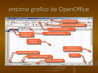 OpenOffice Calc es un programa gratuito y de código abierto para hojas de cálculo que ofrece las mismas funciones que Excel. Puede descargarse y usarse libremente sin costo alguno. Algunas de sus ventajas son que es un software robusto desarrollado durante más de 20 años de forma colaborativa, fácil de usar incluso para usuarios acostumbrados a otros programas de oficina, y compatible con la mayoría de formatos de archivos.