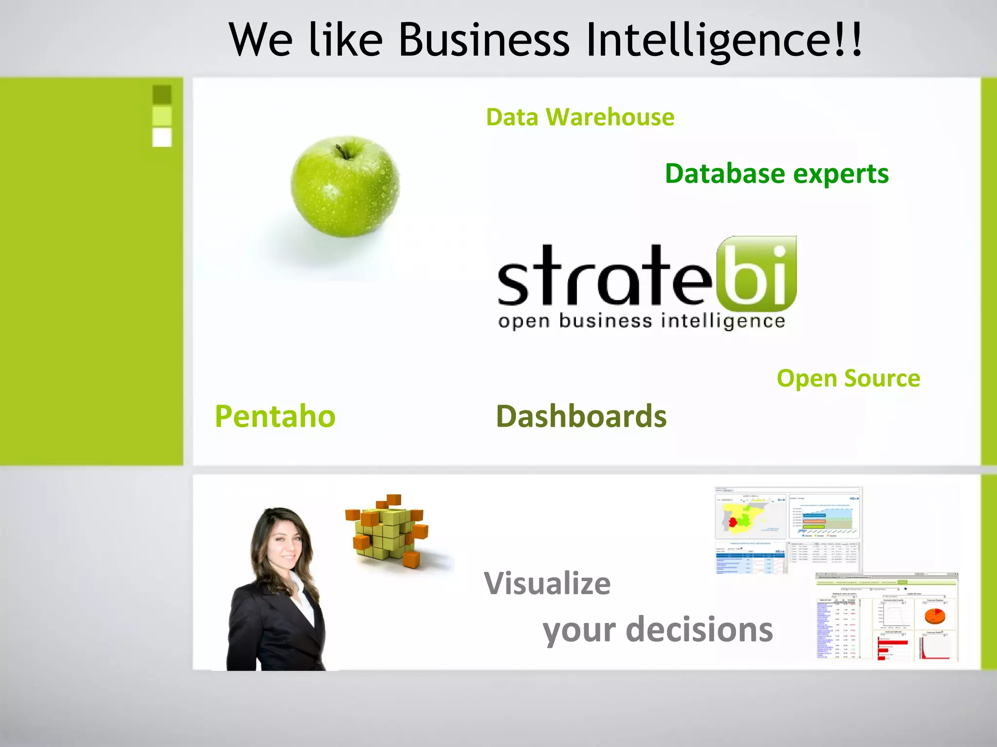 This document discusses business intelligence solutions including data warehousing, dashboards, reporting, analytics, ETL, data mining, and mobile apps. It highlights several open source BI tools like Pentaho, Talend, and Easy Dashboards. The document also describes services offered by Stratebi like developing BI projects and transmitting knowledge to clients.