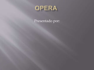 Opera es un navegador web creado por la empresa noruega Opera Software que usa el motor Blink. Está disponible para Windows, Mac OS X y versiones antiguas para Linux y FreeBSD usan el motor Presto. También hay versiones para teléfonos y tabletas con sistemas operativos como Android e iOS. Comenzó como un proyecto de investigación en 1994 y la primera versión pública fue lanzada en 1996. Opera tiene versiones de prueba para desarrolladores llamadas Opera Developer y Opera Next.