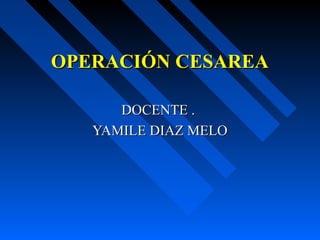 Este documento describe la operación cesárea, incluyendo su definición como el nacimiento de un feto a través de incisiones en la pared abdominal y uterina. Explica las indicaciones maternas, fetales y ovulares para una cesárea y los tipos de procedimientos quirúrgicos. Resume los pasos de la técnica quirúrgica, como la posición, asepsia, incisiones, extracción del feto y cierre. Finalmente, enumera posibles complicaciones intraoperatorias y postoperatorias.