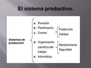 Este documento presenta conceptos básicos sobre administración de operaciones. Define términos clave como empresa, operaciones, producción, sistemas y procesos productivos. Explica los diferentes tipos de procesos productivos como por proyecto, por lote, continuos y mixtos. También describe conceptos como grupos tecnológicos y manufactura delgada.