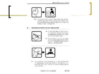 El documento describe los procedimientos aduaneros relacionados con el cruce de fronteras, la recepción de medios de transporte, la carga y descarga de mercancías, los documentos requeridos como manifiestos de carga y facturas comerciales, y los responsabilidades de propietarios, transportistas y aduanas.