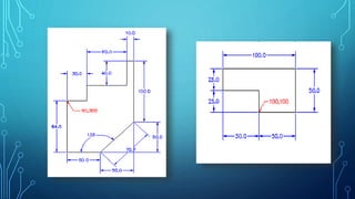 El documento detalla el uso de la herramienta línea en SketchUp para dibujar y dividir líneas y caras, así como el uso de diferentes sistemas de coordenadas, tanto cartesianas como polares. Se explican ejemplos prácticos de dibujo de figuras utilizando estas coordenadas y se enfatizan las instrucciones sobre cómo operar la herramienta eficazmente. También se incluyen recomendaciones para aprender y practicar el uso de AutoCAD, destacando su importancia en el diseño gráfico en 2D y 3D.