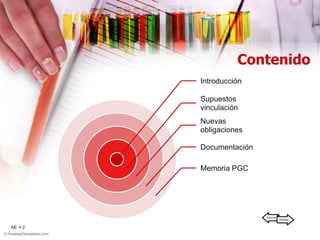 Este documento resume las nuevas regulaciones sobre operaciones vinculadas en España. Establece que 1) las partes vinculadas deben valorar sus operaciones al valor normal de mercado y documentar esta valoración, 2) define los supuestos de vinculación e incluye nuevos casos como cónyuges y parientes de socios, y 3) establece obligaciones como valorar operaciones al precio que habrían acordado partes independientes y elaborar documentación al respecto con el riesgo de sanciones por incumplimiento.
