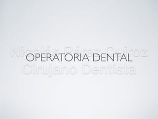 Este documento presenta información sobre operatoria dental. Explica que la operatoria dental involucra procedimientos para restaurar el equilibrio biológico de los dientes cuando se han alterado su estructura, función o estética. Describe las maniobras previas a un procedimiento como la preparación instrumental, anestesia y aislamiento. Luego cubre temas como la preparación cavitaria, protección dentinopulpar e instrumental utilizado.