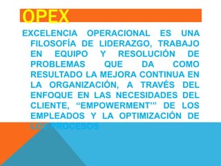 Este documento presenta información sobre sistemas de calidad y excelencia operacional. Resume que Raul Leonel Guzman Sampayo facilita una presentación para Alberta Osorio Cruz sobre este tema de agosto a diciembre de 2014. Explica conceptos clave como filosofía de liderazgo, trabajo en equipo, resolución de problemas, enfoque en el cliente, y optimización de procesos.