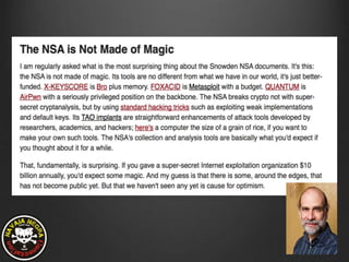 Este documento proporciona información sobre OPSEC (operational security o seguridad operacional) y cómo proteger la privacidad y seguridad de individuos y organizaciones. Explica los conceptos clave de OPSEC como identificar, controlar y proteger información sensible. También ofrece recomendaciones prácticas como el uso de cifrado, compartimentación, comunicaciones seguras y minimizar los metadatos. El objetivo final de OPSEC es frustrar a cualquier adversario potencial al ocultar capacidades e intenciones.