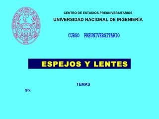 Este documento explica conceptos básicos sobre espejos y lentes, incluyendo cómo forman imágenes. Describe que los espejos planos forman imágenes virtuales e invertidas, y que los espejos esféricos forman imágenes virtuales, derechas o invertidas dependiendo de su posición focal. Explica que las lentes convergentes unen los rayos y forman imágenes derechas y aumentadas, mientras que las lentes divergentes separan los rayos y forman imágenes virtuales, derechas y más pequeñas. Finalmente, menciona