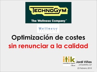 El documento aborda la optimización de costes en centros deportivos ante la actual crisis, destacando la importancia de un análisis exhaustivo de los costes y la implementación de indicadores financieros y comerciales para una gestión eficiente. Se enfatiza la reducción de costes sin sacrificar la calidad, sugiriendo decisiones estratégicas y operativas que consideren las necesidades de los socios y la sostenibilidad del centro. Además, se menciona la necesidad de innovación y adaptación a las nuevas demandas del mercado para garantizar la viabilidad a largo plazo.