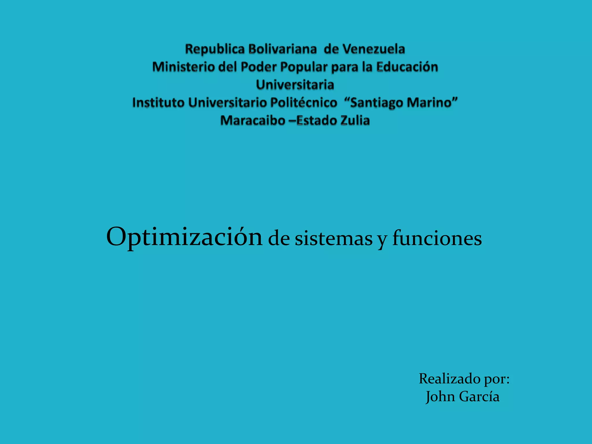 El documento habla sobre la optimización de sistemas y su relación con la ingeniería de sistemas. La optimización busca mejorar la forma de realizar actividades o sistemas de manera más rápida, eficiente y efectiva, mientras que la ingeniería de sistemas permite estudiar y comprender sistemas complejos para implementar u optimizar. Ambos enfoques buscan adoptar programas informáticos para que las tareas se realicen de forma más rápida y eficaz.