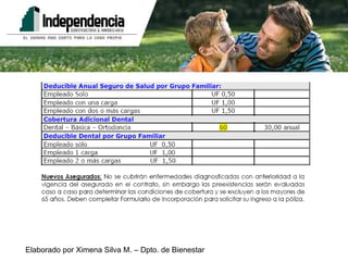 El documento detalla el uso y optimización del seguro complementario de salud ofrecido por la empresa, brindando recomendaciones para solicitudes de reembolso y procedimientos ante intervenciones quirúrgicas. También se destacan exclusiones relevantes del seguro y consejos para maximizar beneficios a través del sistema de salud Fonasa. La responsabilidad del usuario en el correcto uso del seguro es fundamental para mantener y mejorar la cobertura ofrecida.