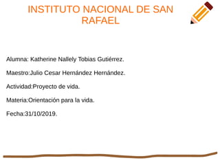 Katherine realizó un proyecto de vida en el que analizó quién es, cómo está en diferentes aspectos de su vida como lo espiritual, mental y emocional, sus fortalezas y debilidades, de dónde viene incluyendo sus gustos, éxitos y fracasos del pasado. También consideró a quién sigue como ejemplo, momentos que han marcado su vida, a dónde quiere ir en el futuro incluyendo metas educativas y laborales, su misión de lograr sus metas de manera honrada y su visión de seguir estudiando.