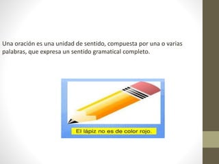 El documento describe los diferentes tipos de oraciones según la actitud del hablante, incluyendo oraciones interrogativas, declarativas, exclamativas, imperativas, dubitativas, desiderativas y enunciativas. Las oraciones pueden expresar una pregunta, enunciado, emoción, petición, duda, deseo u objetiva información.