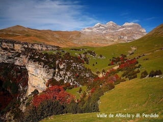 El documento habla sobre el Parque Nacional de Ordesa y Monte Perdido en España, un área natural protegida conocida por su belleza paisajística. También menciona la obra musical Pasión según San Mateo de Johann Sebastian Bach.
