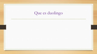 Duolingo es un sitio web y aplicación para aprender idiomas de forma gratuita. Los usuarios aprenden traduciendo textos, lo que ayuda a digitalizar contenido. Actualmente ofrece cursos en inglés, español, francés, alemán y portugués. Cualquiera puede ayudar a crear nuevos cursos a través de su "Incubadora de idiomas". Duolingo fue fundado por Luis von Ahn, pionero del crowdsourcing, y ofrece una forma divertida y gratuita de aprender idiomas.