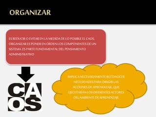 Este documento describe los diferentes actores y componentes que deben considerarse al planificar un ambiente de aprendizaje, incluyendo actores, espacios, tiempos, medios y materiales. Explica que estos elementos interactúan entre sí de maneras binarias y terciarias complejas y que el objetivo es establecer relaciones entre ellos para lograr los objetivos educativos considerando las necesidades, habilidades y condiciones cambiantes de los actores.
