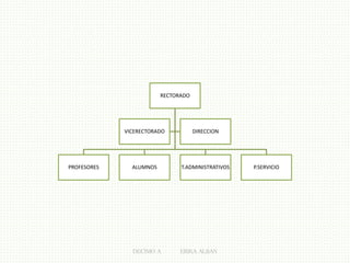 El documento parece ser una carta dirigida a Erika Alban que menciona al Rectorado, profesores, alumnos, personal administrativo y de servicio, así como al Vicerectorado y la Dirección.