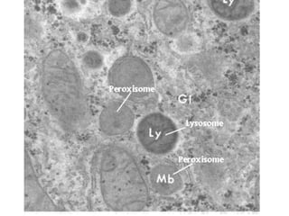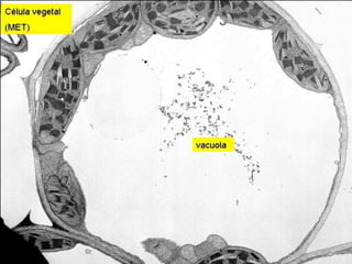 Este documento presenta un esquema del aparato de Golgi (CG) y los lisosomas, y describe su función en el transporte de vesículas y materiales dentro de la célula eucariota, así como fotografías y esquemas de los cloroplastos, un orgánulo fotosintético clave.