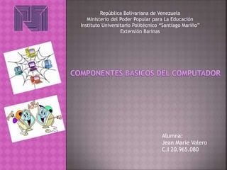 Este documento es un registro de una estudiante de la República Bolivariana de Venezuela en el Instituto Universitario Politécnico "Santiago Mariño" en la Extensión de Barinas. Contiene el nombre de la alumna, Jean Marie Valero, y su número de identificación, 20.965.080.