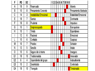 El documento presenta información sobre la orientación profesional desde la psicología educativa. Se definen conceptos como vocación, profesión y ocupación. También se describen pruebas psicométricas como el 16PF de Cattell y el Kuder, las cuales permiten evaluar rasgos de personalidad e intereses vocacionales de un estudiante para orientarlo hacia una carrera acorde a sus características.