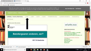 Este documento presenta un resumen del sistema educativo en el País Vasco para los años 2017-2018. Describe las diferentes etapas educativas como la educación secundaria obligatoria, la formación profesional básica, el bachillerato y la formación profesional de grado medio y superior. También explica las diferentes modalidades de bachillerato y las asignaturas correspondientes a cada una. Finalmente, establece la relación entre las modalidades de bachillerato y los ciclos de formación profesional superior.