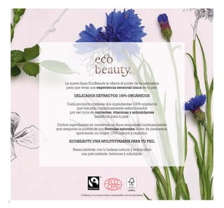 La nueva línea Ecobeauty de Oriflame ofrece productos de cuidado facial elaborados con ingredientes 100% orgánicos, diseñados para nutrir y revitalizar la piel. Cada producto, como el tónico y el aceite facial, se presenta en empaques biodegradables y se enfoca en proporcionar beneficios como hidratación y reparación de la piel. La línea promueve un enfoque sostenible hacia la belleza, utilizando extractos naturales y evitando parabenos.