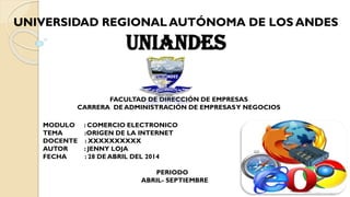 El documento describe los orígenes e historia de Internet desde 1969 como un proyecto militar estadounidense para crear una red de comunicaciones más resiliente. Explica los hitos clave como el desarrollo de ARPANET en 1972, la adopción del protocolo TCP/IP en 1973, el nacimiento de Internet en 1974, y la creación de la World Wide Web en 1989. También resume los beneficios de Internet para las empresas y cómo se ha convertido en una herramienta fundamental de comunicación global.