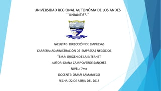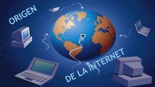 El documento describe el origen e historia de Internet. Se explica que Internet surgió hace 45 años como un proyecto militar llamado ARPANET, cuyo objetivo era investigar redes de computadoras. ARPANET conectó varias universidades y centros de investigación en Estados Unidos. Desde entonces, Internet ha evolucionado mucho y ahora es una red global que conecta a millones de personas y ofrece servicios como el correo electrónico y la World Wide Web.