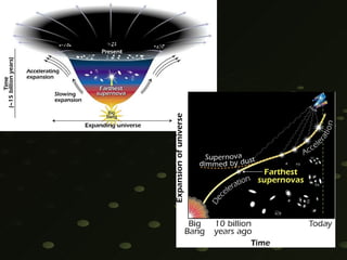 El documento resume los orígenes y la evolución del universo según la teoría del Big Bang, incluyendo la formación de estrellas, galaxias y tipos de galaxias. También describe el sistema solar, los planetas, la Vía Láctea y los fundadores clave de la astronomía como Copérnico, Kepler y Newton.