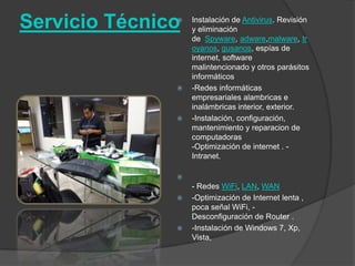 El documento habla sobre el mantenimiento de computadoras, incluyendo mantenimiento preventivo y correctivo. El mantenimiento preventivo implica revisiones periódicas para detectar fallas temprano, mientras que el mantenimiento correctivo ocurre después de una falla. También discute temas como virus de computadora, momento de solicitar reparación, y recomendaciones de seguridad para el mantenimiento.