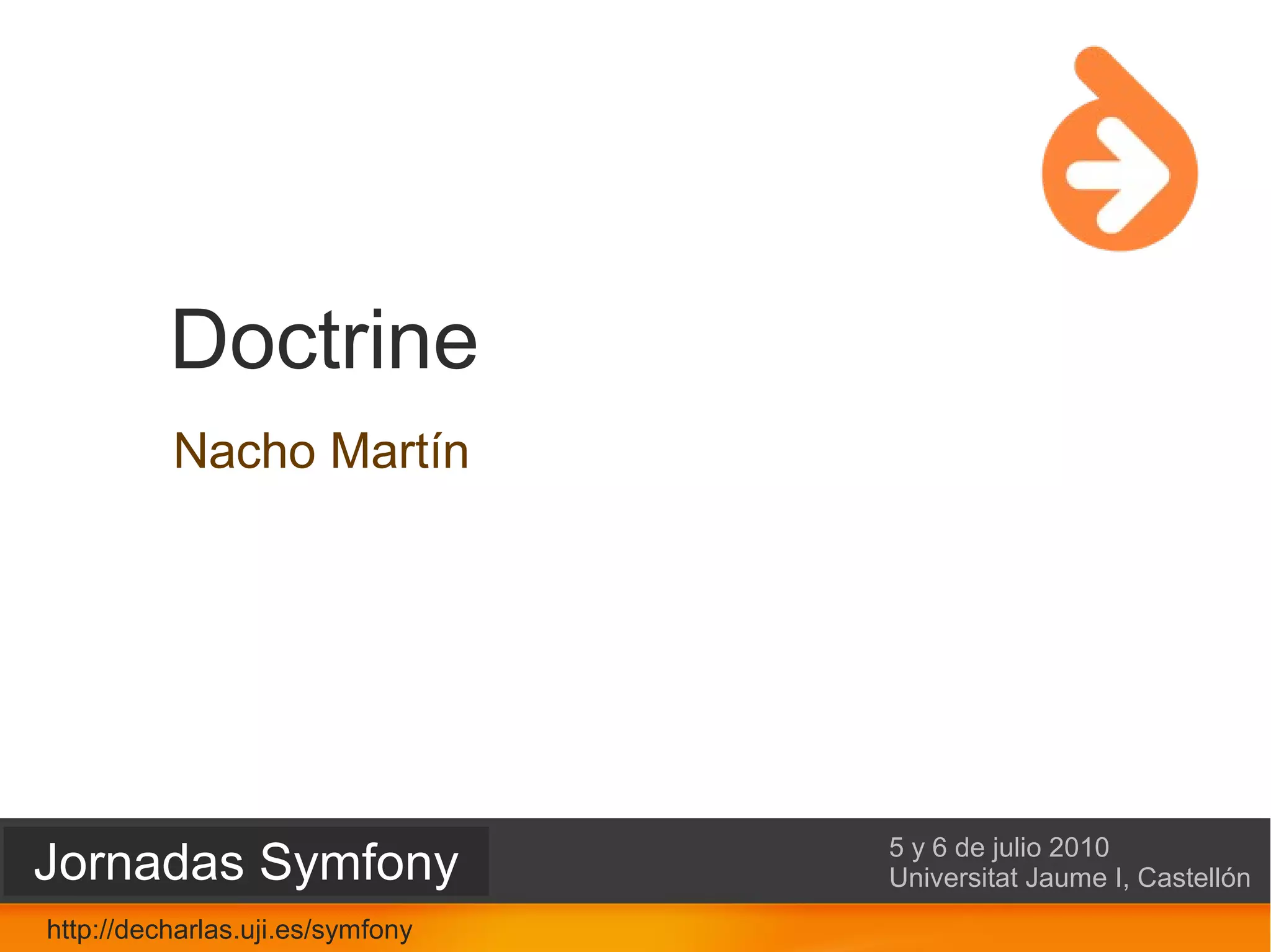 Este documento resume las Jornadas Symfony que tendrán lugar los días 5 y 6 de julio de 2010 en la Universitat Jaume I de Castellón. Incluye información sobre las charlas de Doctrine y Symfony que se presentarán, así como ejemplos prácticos sobre el uso de Doctrine para crear aplicaciones con Symfony.
